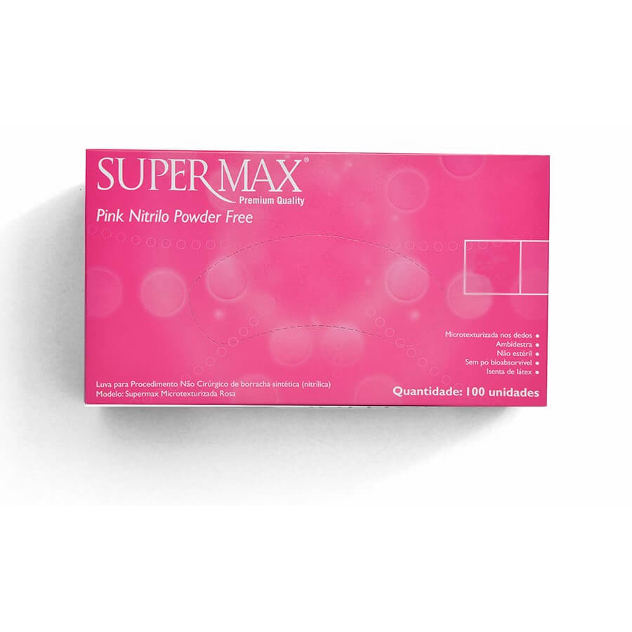 Luva Nitrílica Supermax Pink Tamanho P com 100 unidades