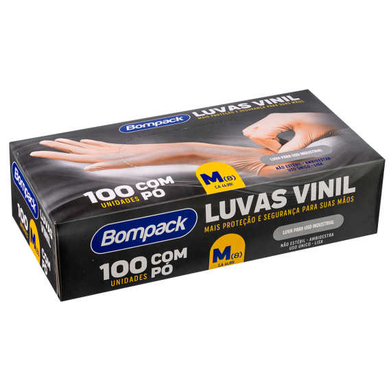 Luvas de Vinil Bompack Tamanho M Com 100 unidades